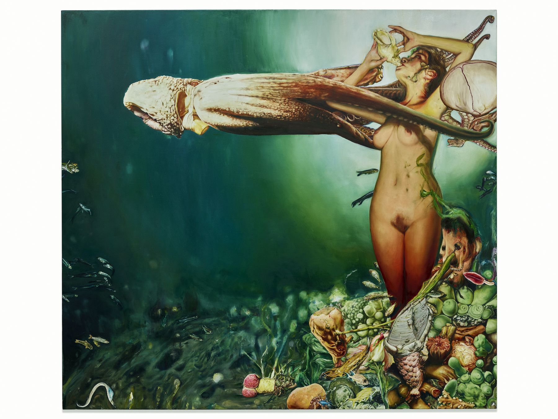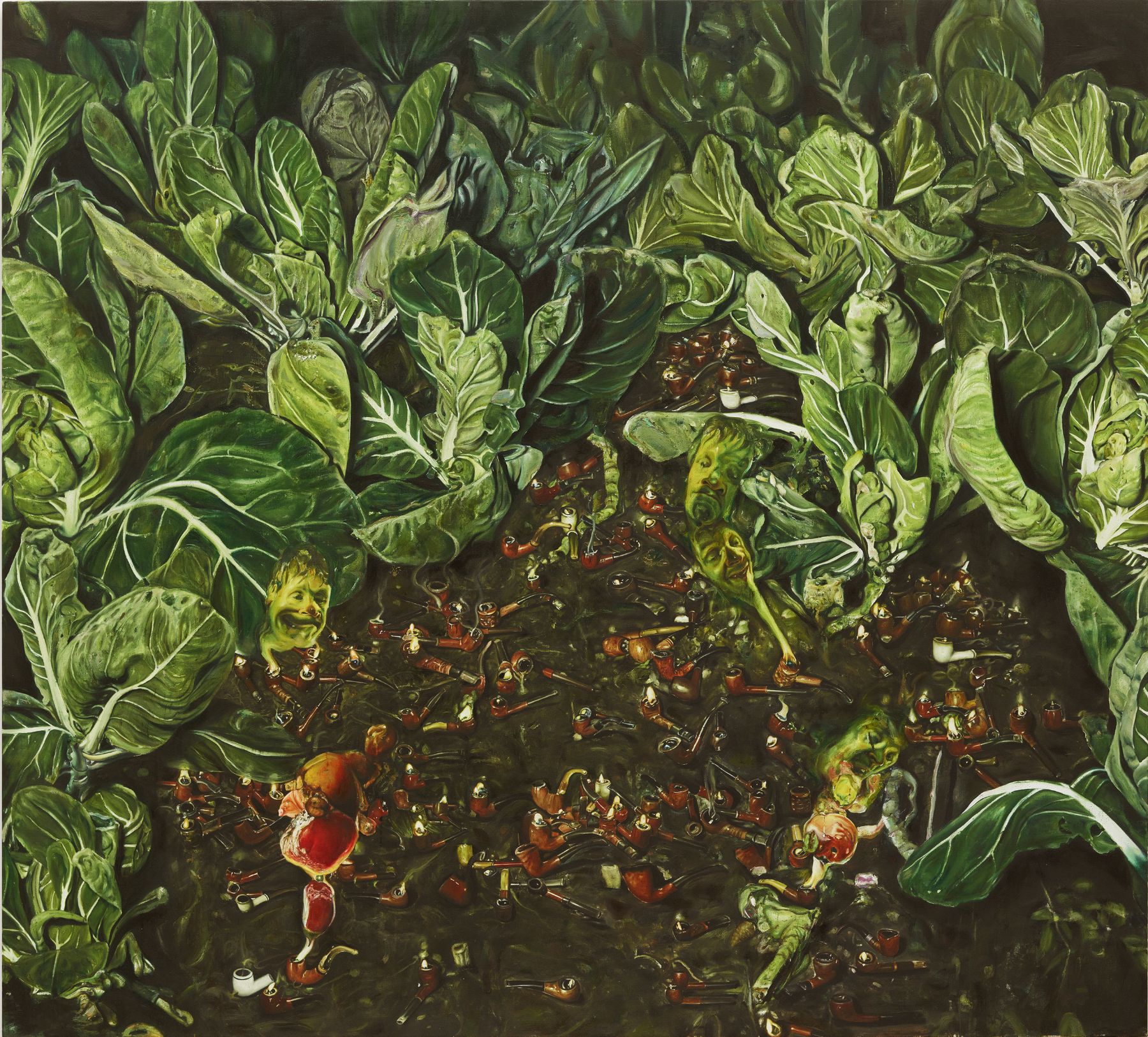 truite et casserole 230x240cm 2017 huile sur toile